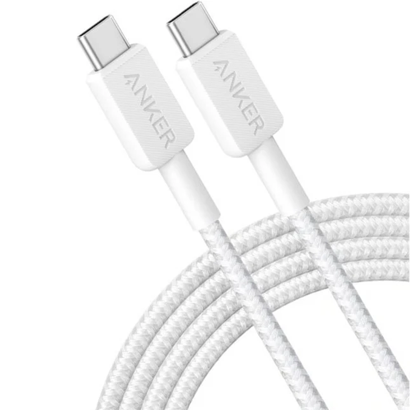 كابل أنكر USB-C إلى USB-C (طول 3 أقدام، 240 واط، مضفر) أبيض