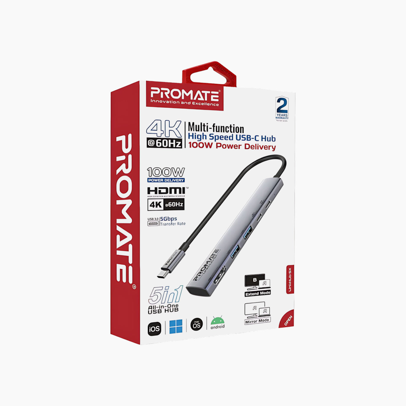 موزع USB-C متعدد الوظائف عالي السرعة PROMATE LinkHub-5X (100 واط)( Default Title ) - https://shophuna.com/ar/products/promate-linkhub-5x-multi-function-high-speed-usb-c-hub-100w-1043?variant=53633899397404