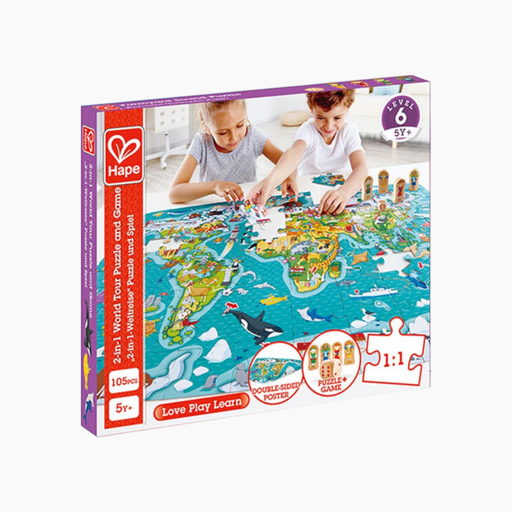 An engaging educational toy designed for young explorers aged 5 and up. This innovative set combines the challenge of a 100-piece cardboard puzzle with the excitement of a board game. Children will enjoy assembling a vibrant world map while developing essential cognitive skills such as creative thinking, problem-solving, and spatial awareness.
