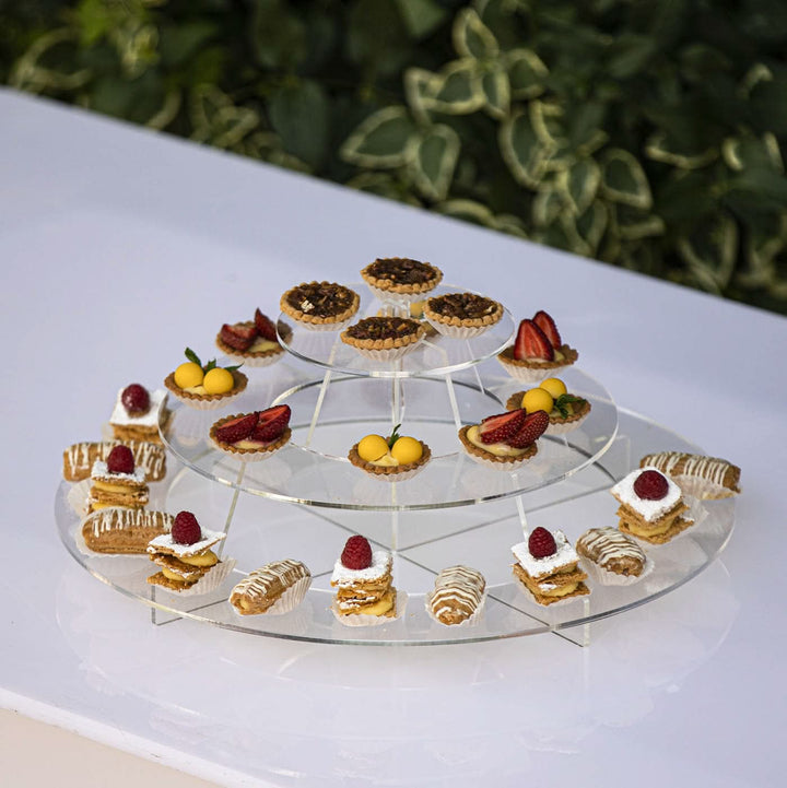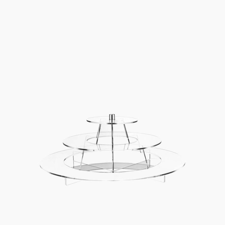 صُمم هذا الحامل لتعزيز عرض حلوياتكم. بقطر 43 سم وارتفاع 17 سم، يُعد مثاليًا لعرض الكب كيك أو المافن أو المعجنات. يسمح لكم تصميمه ثلاثي الطبقات بعرض مجموعة متنوعة من الحلويات، بينما يضمن هيكله المتين دعمًا موثوقًا لجميع إبداعاتكم اللذيذة.