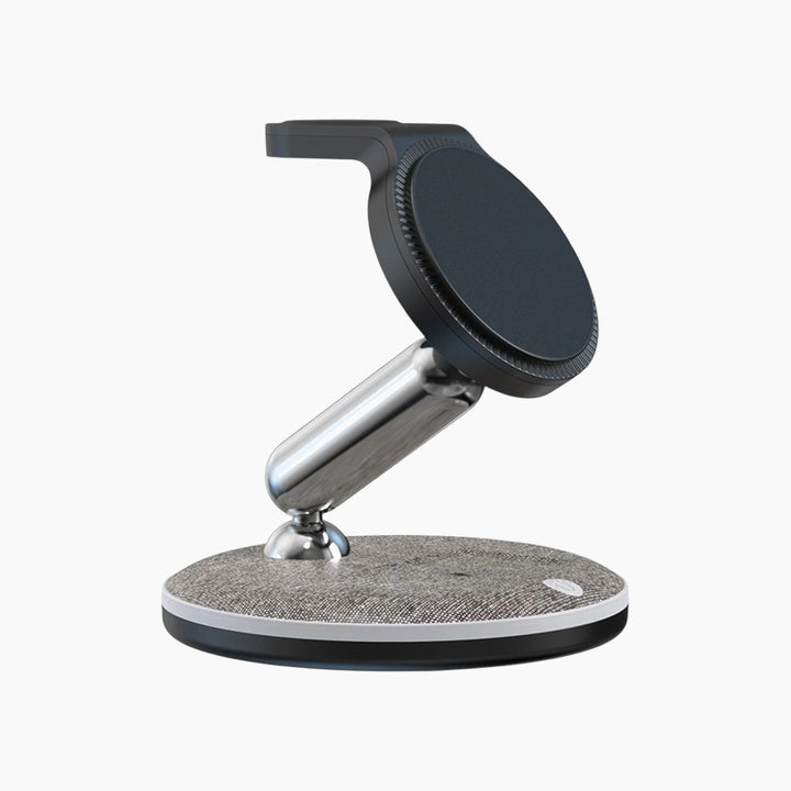 This all-in-one solution elegantly combines magnetic wireless charging with a foldable, space-saving design, ensuring your essential devices are always powered up and readily accessible.