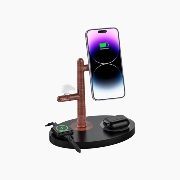 Elevate your workspace or bedside setup with the 4 in 1 Wireless Classy Decor Station Magnetic Charger with Lamp, a smart all-in-one solution built for effortless charging and ambient lighting. With its tree-branch inspired design and sleek finishes in white or black, this versatile station combines form and function like never before.