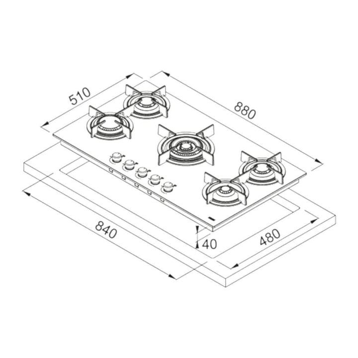 موقد غاز زجاجي مع إشعال إلكتروني مدمج 90 سم