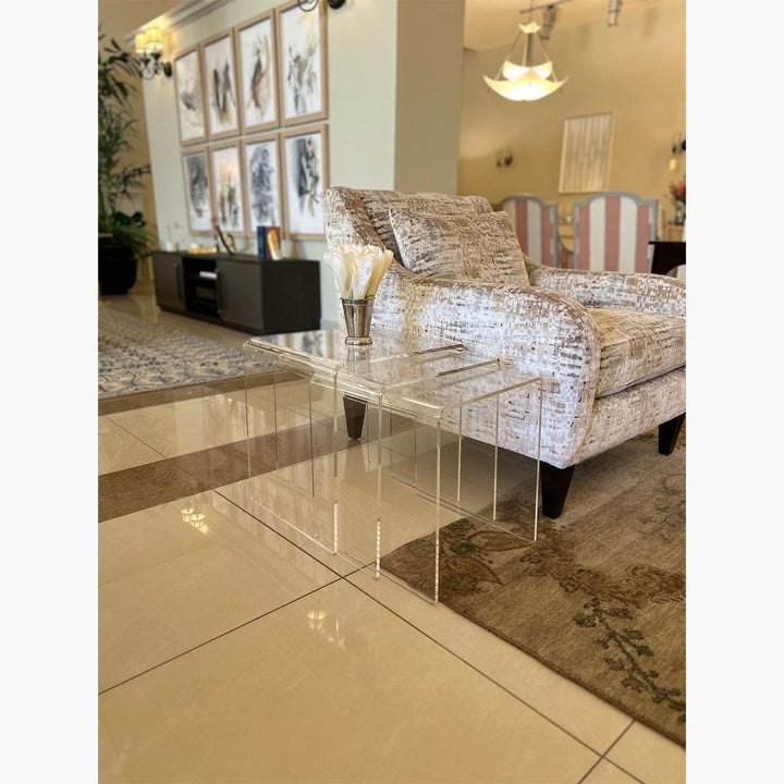 نقدم لكم طقم طاولات الخدمة الأكريليك، مزيج مثالي بين العملية والأناقة. صُمم هذا الطقم ليُضفي لمسةً جماليةً على مساحتكم مع توفير خيارات متعددة الاستخدامات.