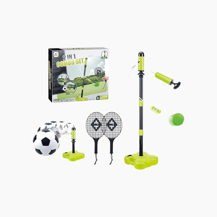 Unleash a world of active fun with the Aojie Sport 2 In 1 Combo Set, thoughtfully designed for young adventurers aged 6 and up. This dynamic duo seamlessly blends the excitement of a swing racket game with the thrill of a mini soccer set, offering a comprehensive and engaging playtime experience.