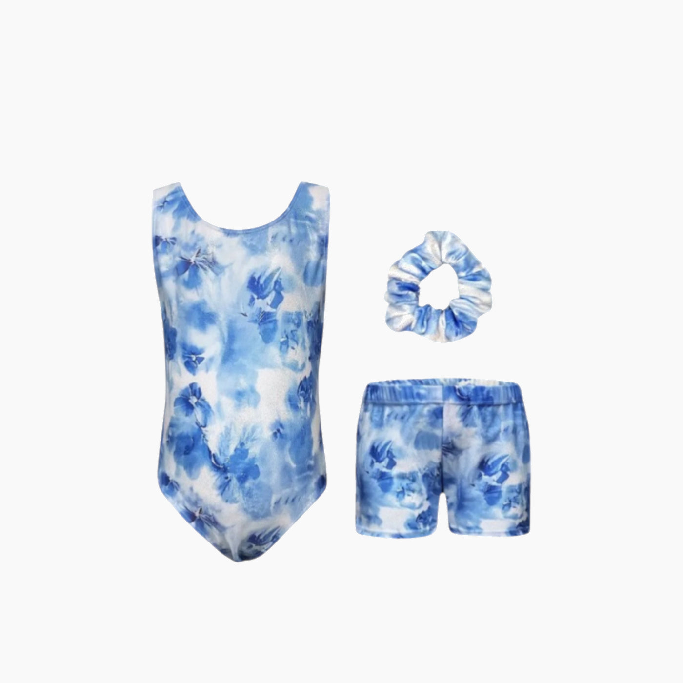 Introducing the Aqua Blue set, a coordinated three-piece collection. About the Product Bodysuit Short Scrunchie