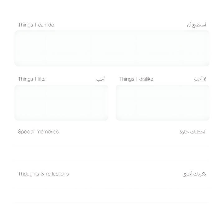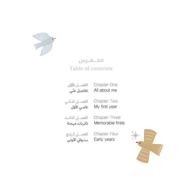 كتاب الطفل هو تذكارٌ رائعٌ مُصمّمٌ لتوثيق كل لحظةٍ ثمينةٍ من سنوات طفلكِ الأولى. من الابتسامات الأولى إلى الخطوات الأولى، يُساعد هذا الكتابُ الخالدُ الآباءَ على تدوينِ مراحلَ حياتهِ وذكرياتهِ بطريقةٍ هادفةٍ ومنظمة.