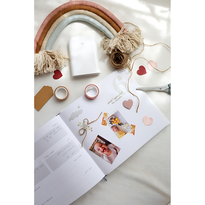 يتضمن إرشاداتٍ وأقسامًا لتفاصيل الولادة، ومراحلها، وأعيادها، وذكرياتها الخاصة، مما يُسهّل توثيق كل لحظةٍ مهمة.