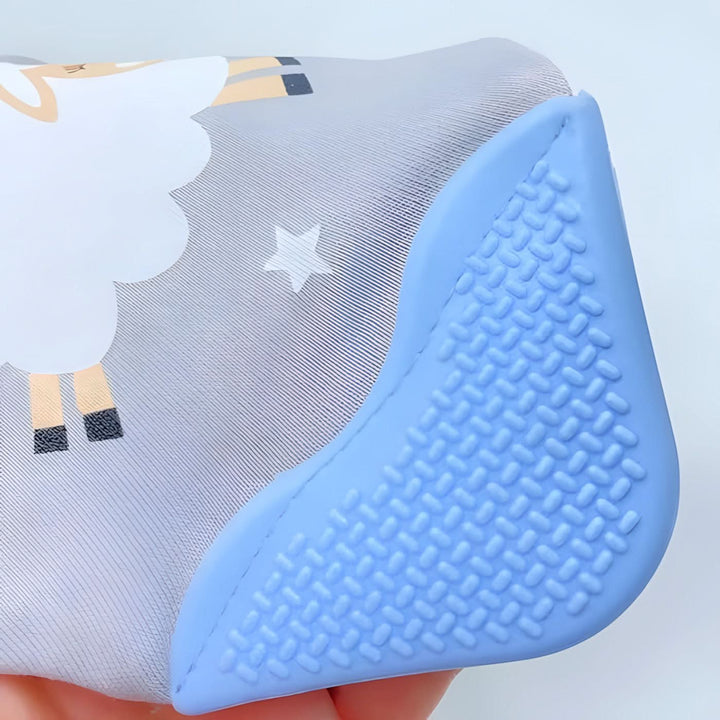صُمم هذا المنتج مع مراعاة السلامة، مما يضمن ملاءمته لطفلكِ من عمر ٠ شهر فما فوق. مزيج المواد والتصميم المدروس يجعله خيارًا عمليًا للآباء الذين يتطلعون إلى تخفيف ألم التسنين لدى أطفالهم مع الحفاظ على أناقتهم ونظافتهم أثناء تناول الطعام.