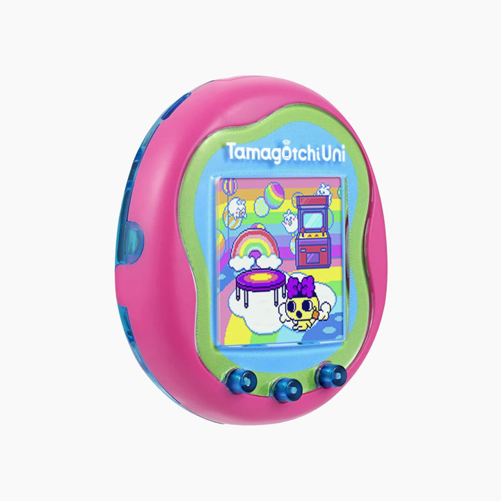 A next-generation virtual pet that combines the nostalgic charm of classic Tamagotchi with modern connectivity and design. Available in vibrant Pink and Purple colorways, it offers a stylish, wearable experience that appeals to fans of all ages. With Wi-Fi capabilities, a sleek shell design, and engaging gameplay, the Tamagotchi Uni invites users into the immersive "Tamaverse" for a unique and interactive pet-raising journey.