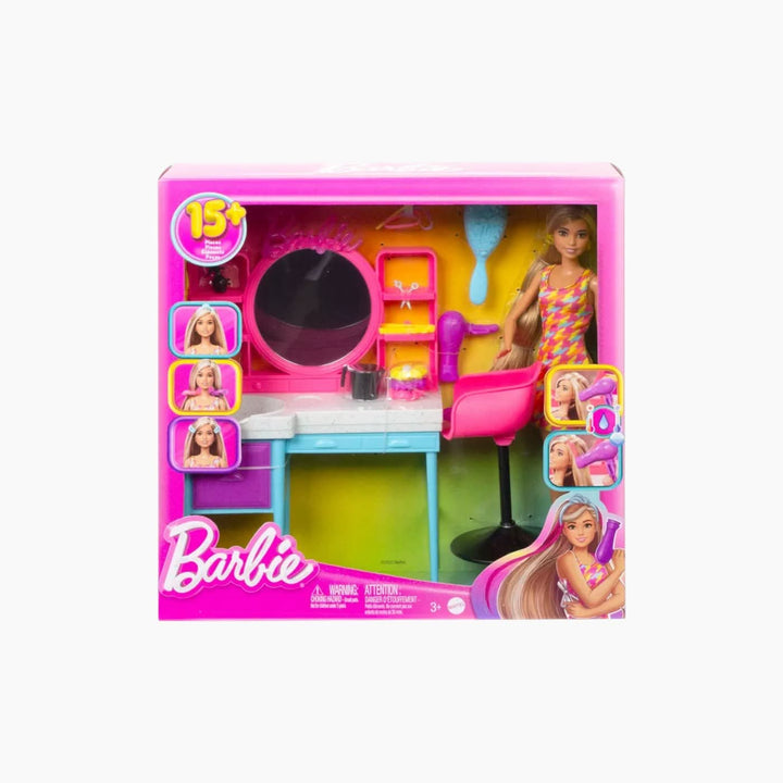 حوّلي وقت اللعب مع مجموعة ألعاب صالون باربي لتصفيف الشعر، وانطلقي في مغامرة شيّقة في عالم تصفيف الشعر والإبداع. مثالية لعشاق الموضة الصغار، تُغمر هذه المجموعة الأطفال في بيئة صالون تُمكّنهم من استكشاف إمكانيات لا حصر لها في تصفيف الشعر. بفضل ملحقات الصالون الواقعية وتصميمها النابض بالحياة، تُشجع هذه المجموعة على اللعب التخيلي وتنمية المهارات.