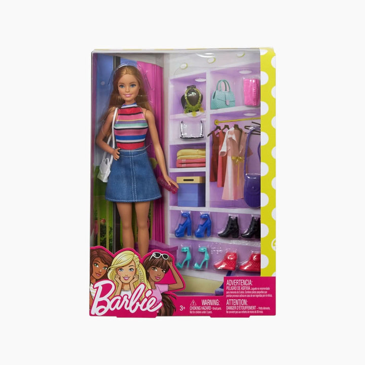 - يشمل: دمية باربي أنيقة مع عدة أزواج من الأحذية