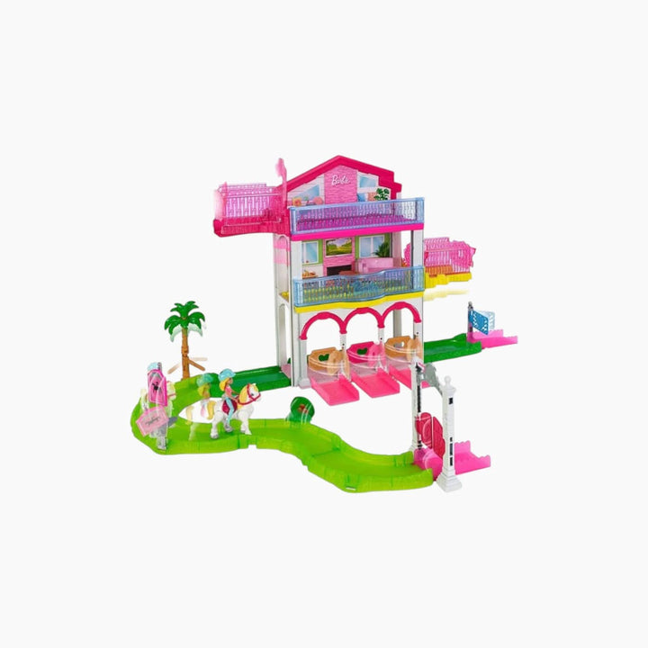 استكشفوا إمكانيات لا حصر لها من المرح والتعلم مع هذا الإسطبل ذو التصميم الجميل، المثالي للأطفال الذين يُحبون باربي ورعاية الحيوانات.