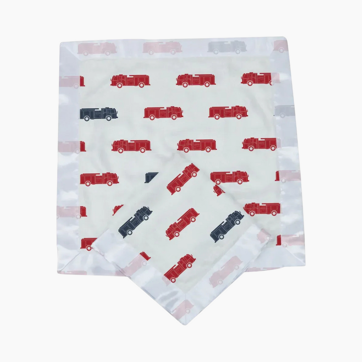 Snuggle up with the Blue and Red Fire Trucks Blankie, a beloved companion that soothes and comforts children through restless nights and hectic adventures. This security blanket, adorned with vibrant fire truck motifs, offers a sense of familiarity and reassurance, quickly becoming a cherished part of a child's everyday routine. Made from 100% natural cotton muslin, it promises softness and durability, ensuring cozy comfort for your little one.