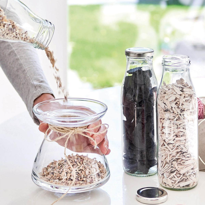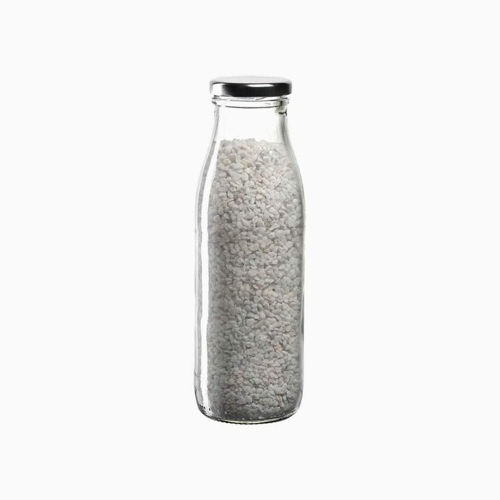 نقدم لكم زجاجة ٥٠٠ مل مع حبيبات بلون أبيض خلاب، تجمع بين العملية والأناقة. هذه القطعة الفريدة مثالية لإضفاء لمسة من الجمال على ديكور منزلك.
