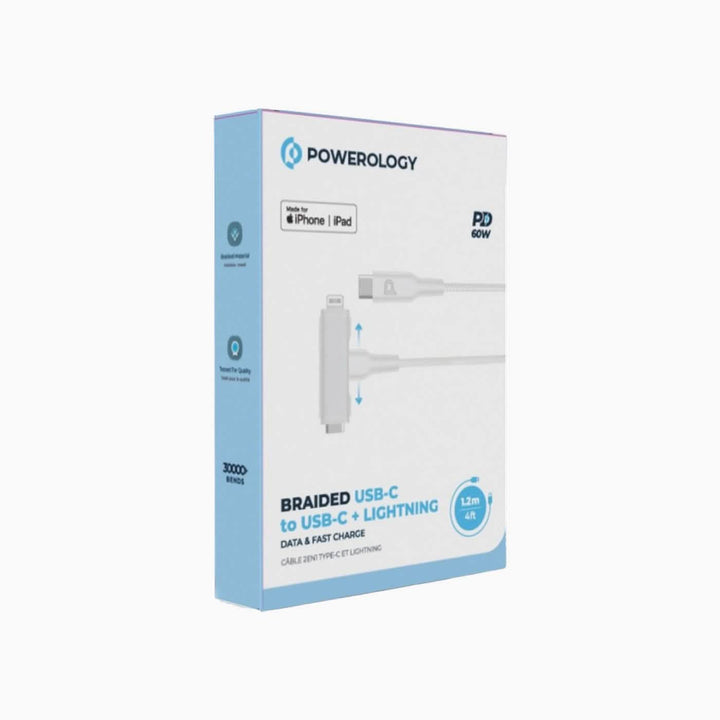 كابل USB-C مضفر إلى USB-C + Lightning Data وشحن سريع بطول 1.2 متر/4 قدم
