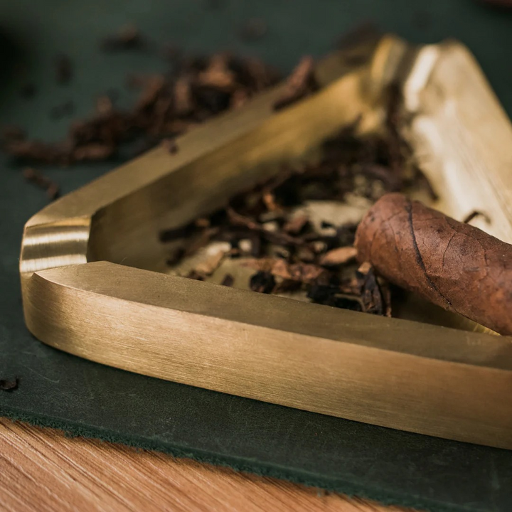 Elegantly crafted as a decorative accent for any home or office, this brass ashtray offers both functionality and a striking visual appeal. Its solid construction ensures durability, making it a lasting addition to any interior. The gold-toned, brushed finish adds a touch of luxury, perfectly blending with both modern and classic decor. Not just for smokers, this versatile piece can also serve as a stylish holder for small items or keys, enhancing any space it's placed in.