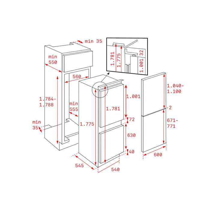 توفر الثلاجة المدمجة ميزات متقدمة مثل تقنية No Frost وخيارات تخزين قابلة للتخصيص، مما يعزز كفاءة المطبخ وحفظ الطعام.