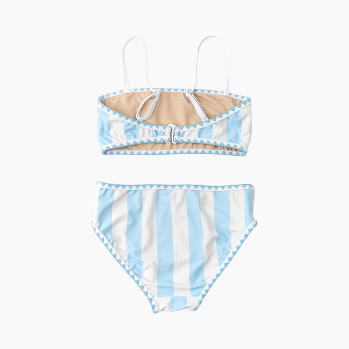 Perfect for sun-filled adventures, this vibrant set combines charm with practicality. The cabana daisy pattern offers a timeless and chic look, while the crocheted daisy details add an adorable touch she'll love. With built-in SPF 50, this bikini ensures superior sun protection, making it an ideal choice for beach days or poolside fun.