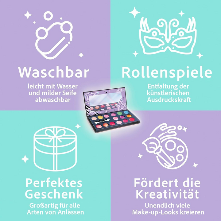 • Includes a range of vibrant, non-toxic makeup colors safe for young skin