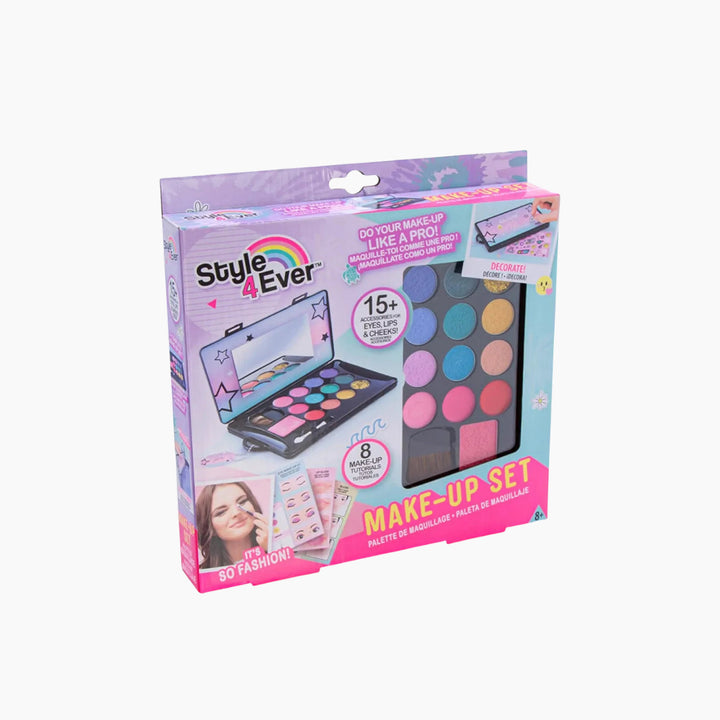 A compact and stylish makeup kit designed for young beauty enthusiasts. This all-in-one set allows children to explore their creativity and practice makeup application skills, making it an ideal gift for ages 8 and up. With its portable design and included accessories, it's perfect for on-the-go glamour.