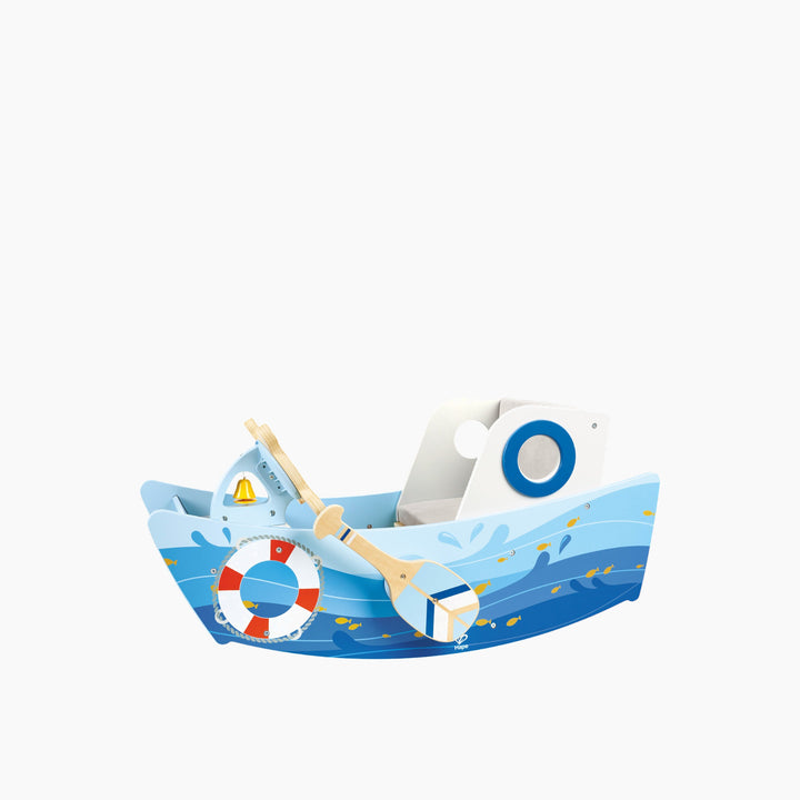 انطلق في رحلة بحرية آسرة مع هذا القارب الخشبي الهزاز المصنوع بإتقان. صُممت هذه اللعبة البحرية للأطفال من عمر ١٢ شهرًا فما فوق، وهي تشجع على اللعب التخيلي وتُنمّي المهارات الحركية الأساسية. بفضل شكل القارب الكلاسيكي وقاعدته الهزازة المتوازنة، يمكن للربابنة الصغار الاستمتاع بالإبحار بسلاسة مع تعزيز توازنهم وتناسق حركتهم. مصنوعة من خشب طبيعي ومواد آمنة للأطفال، تضمن هذه اللعبة المتعة والأمان.