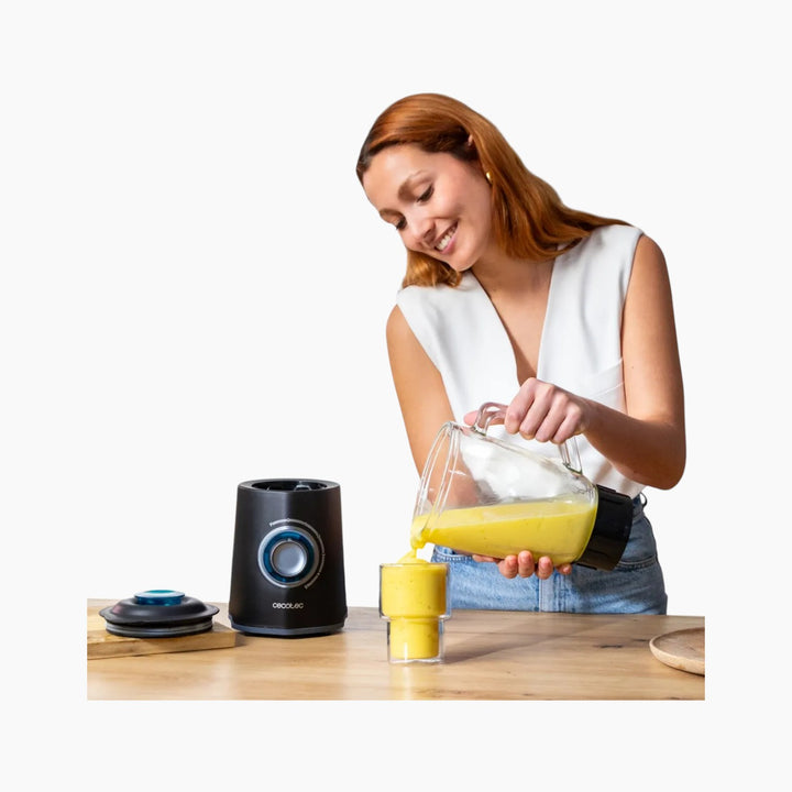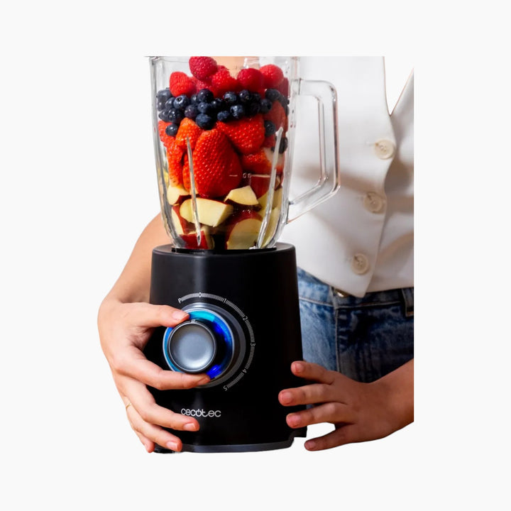- صُمّم خلاط Cecotec Power Black Titanium 2000Max Mix Go لتوفير الراحة والأمان، ويتميز بغطاء محكم وقاعدة ثابتة لتشغيل سلس.