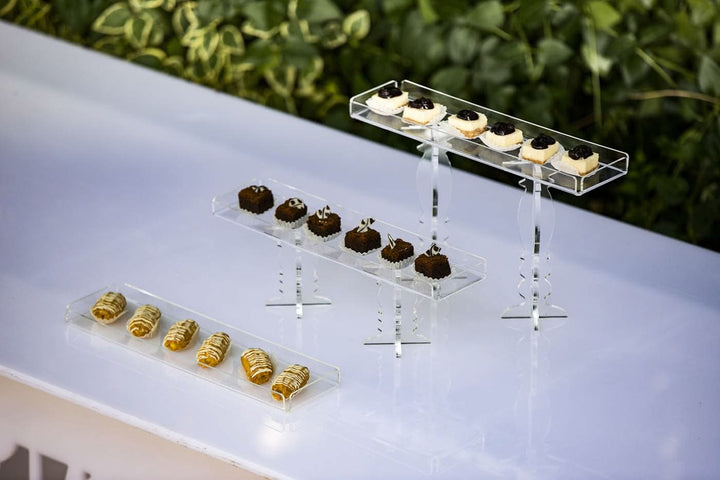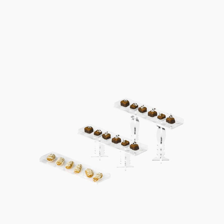 مجموعة صواني الشوكولاتة المكونة من 3 قطع مثالية لعرض الشوكولاتة اللذيذة بأناقة. صُممت كل صينية بحجم فريد لاستيعاب أنواع مختلفة من الحلويات، مما يجعلها إضافة متعددة الاستخدامات لديكور مناسبتك. لا يُعزز التصميم الأنيق المظهر فحسب، بل يُكمل أيضًا أي مكان، سواءً كان حفلًا أو زفافًا أو مناسبة خاصة.