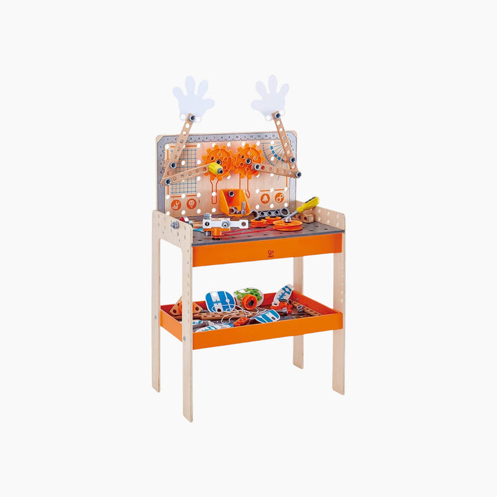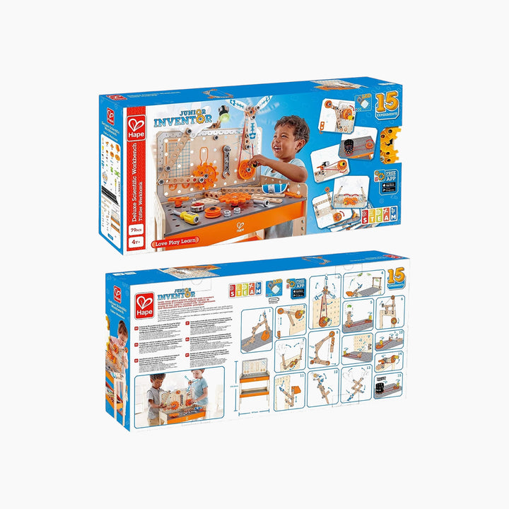 - يتضمن طاولة عمل خشبية متينة مع مجموعة من الأدوات العلمية ودليل للتجارب.
