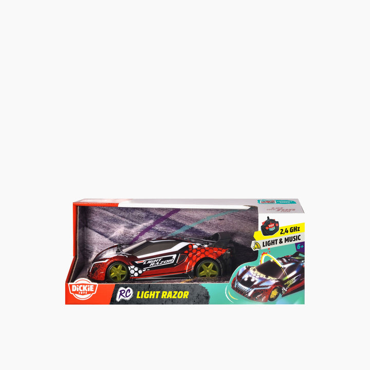 Unleash thrilling racing action with the Dickie Toys RC Light Razor Remote Control Car. This dynamic sports vehicle is designed for speed and excitement, bringing the thrill of the race track right into your child's hands. Ready for immediate play, it offers an intuitive control experience for young racers.