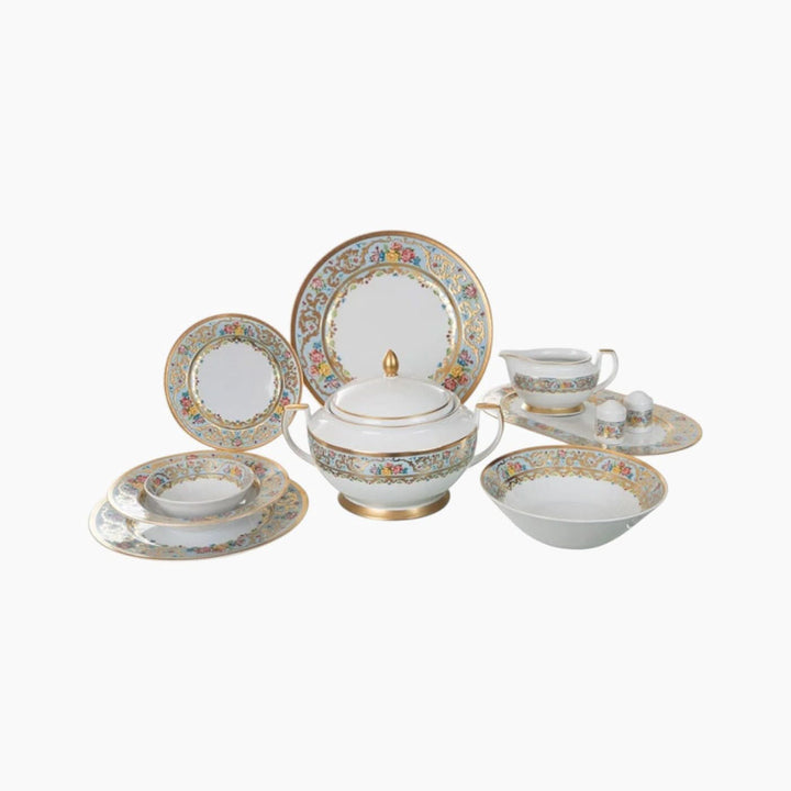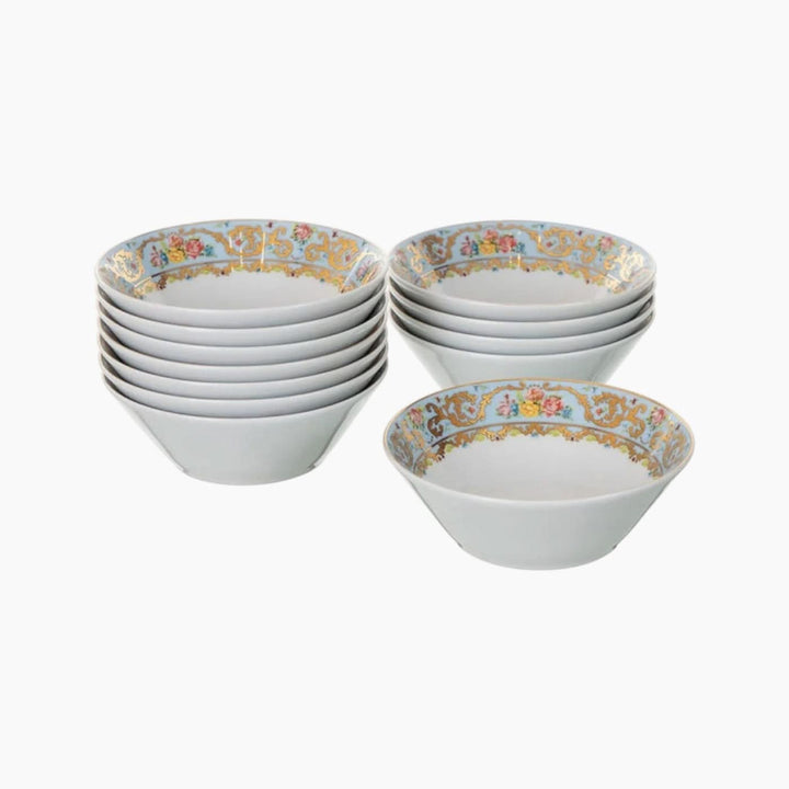 - يشمل: 12 طبق عشاء، 12 طبق فاكهة، 12 طبق تقديم عميق، 12 سلطانية جانبية، 12 طبق حلويات