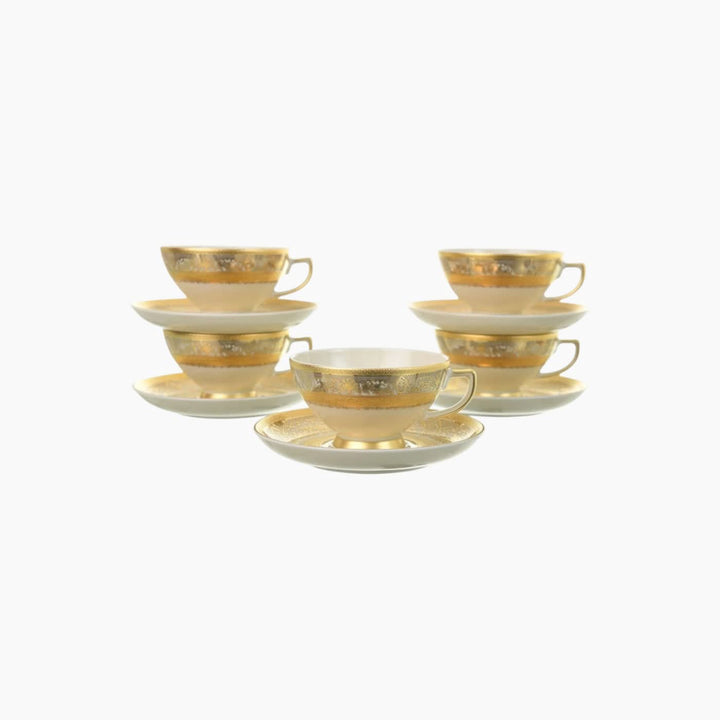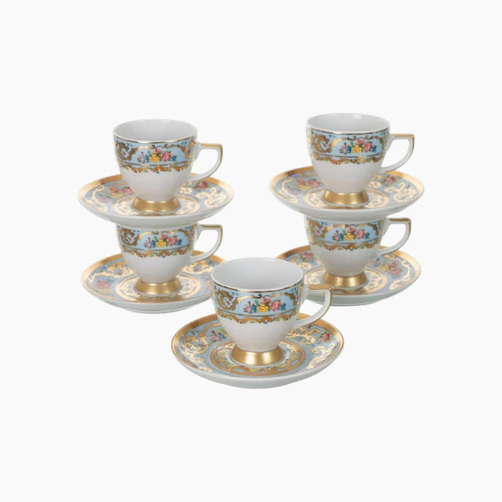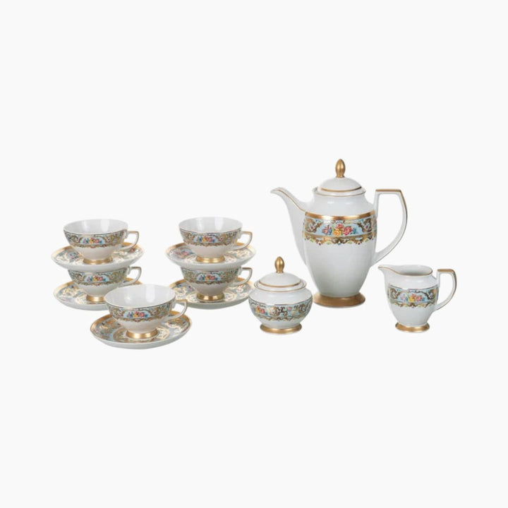- قطع إضافية: طبقان بيضاويان، 12 فنجان شاي مع صحن، إبريق شاي، وعاء سكر، وعاء كريمة