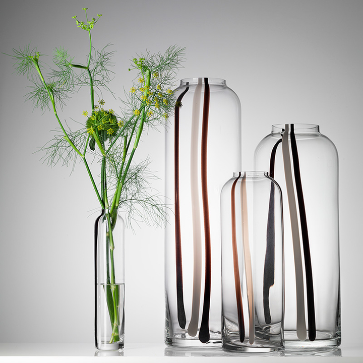 مزهرية إمباير شفافة بزخارف باللونين الأبيض والأسود
