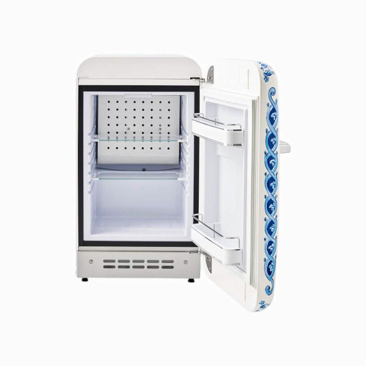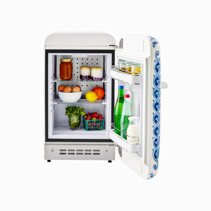 تجمع هذه الثلاجة الأنيقة من Dolce & Gabbana بين الموضة والوظيفة، وتوفر حلاً تخزينًا مريحًا للمطابخ الصغيرة أو كوحدة إضافية للمشروبات والوجبات الخفيفة.