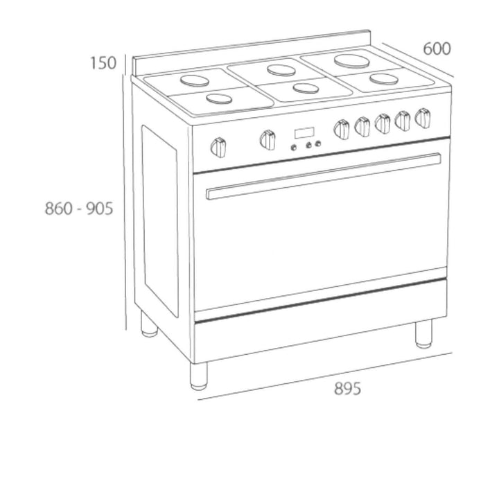 - المميزات الرئيسية: سطح مربع ملائم للشعلة، إشعال ذاتي لسهولة الاستخدام، قاعدة تعمل بالغاز ووظائف الشواء.