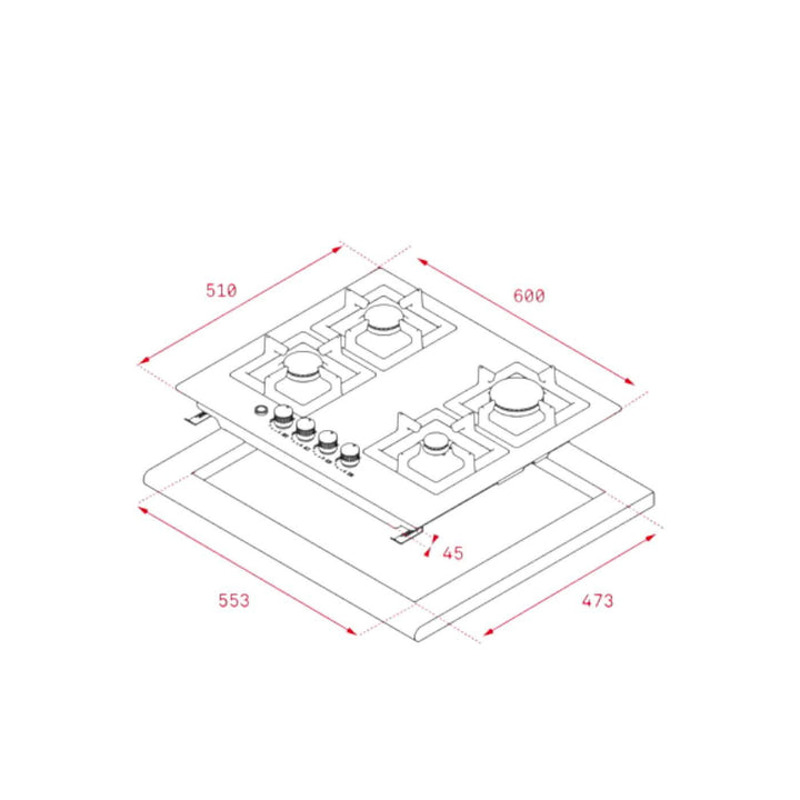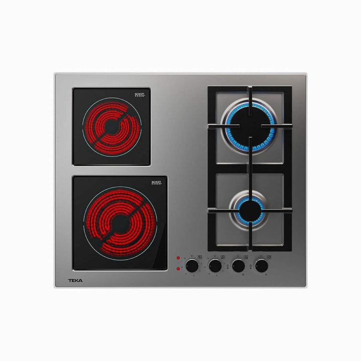 - الاستخدامات: منطقتان للطهي بالغاز ومنطقتان للطهي بالكهرباء للحصول على خيارات طهي متعددة.