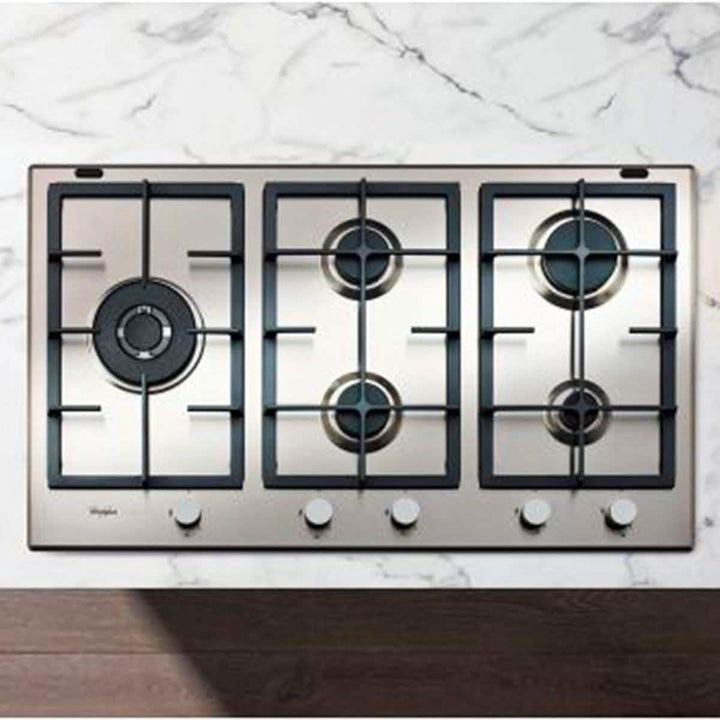 موقد غاز 90 سم مزود بكامل ميزات الأمان والإشعال التلقائي. يتميز بموقد غاز مزدوج مع 5 شعلات غاز. مزود بجهاز أمان للقفل التلقائي وشبكات من الحديد الزهر، يعزز هذا الموقد الغازي كفاءة المطبخ ويجعل الطهي سهلاً.