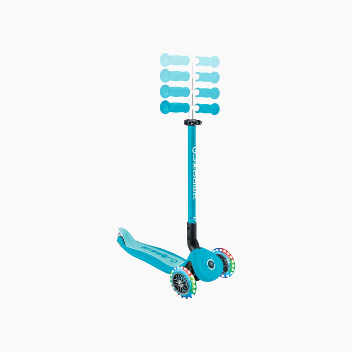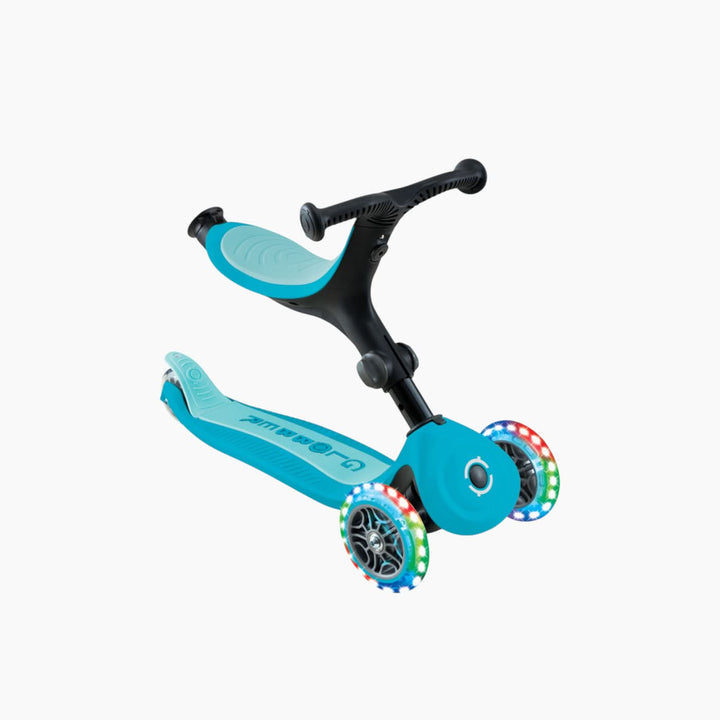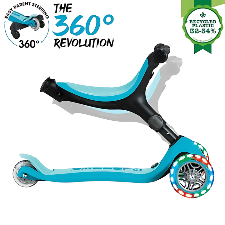 سكوتر عجلات LED Go Up Active Lights 360 درجة في اللون الأزرق مصمم لينمو مع طفلك، ينتقل من كرسي متحرك ودراجة مشي للأطفال الصغار إلى سكوتر ثلاثي العجلات للأطفال الأكبر سنًا. تشجع تصميمه المبتكر اللعب والتطوير مع ضمان السلامة والمرح بعجلات LED متلألئة ونظام توجيه فريد بزاوية 360 درجة يتحكم فيه الوالدين. هذا السكوتر المتعدد الاستخدامات مثالي للأطفال الذين تتراوح أعمارهم بين 15 شهرًا و9 سنوات، متكيف بسلاسة مع احتياجاتهم وقدراتهم المتغيرة.