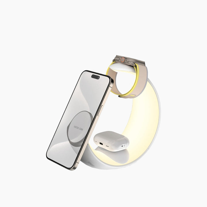 Elevate your charging experience with the Green Lion Moon Charge 4-in-1 Wireless Charger, a sophisticated solution designed for seamless power management. This elegantly crafted charging station streamlines your routine, allowing you to power multiple devices simultaneously with effortless efficiency.