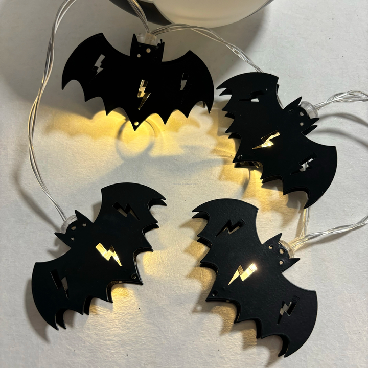- التصميم: أضواء على شكل خفافيش تضفي جمالية ممتعة ومناسبة للهالوين.