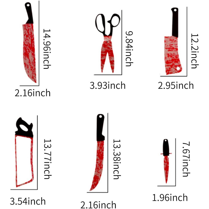 - سكاكين تبدو أصلية: مصنوعة لتبدو وكأنها مغمورة بالدماء، بمقاس 36x7 سم.