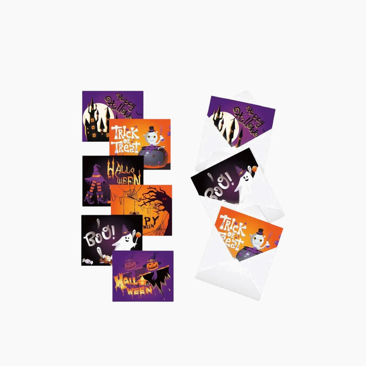 - حزمة من 6 بطاقات: مجموعة متنوعة من التصاميم لتناسب أي موضوع هالوين.