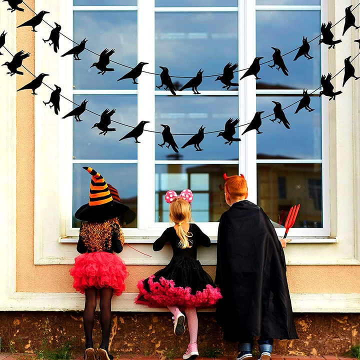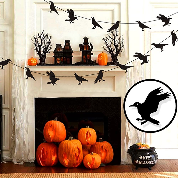 تحوّلي ديكور الهالوين الخاص بك مع هذا الراية الساحرة بشكل الغراب، مثالية لإضافة لمسة من الغموض والأناقة إلى أي مكان. مصممة بسلسلة من صور غراب مذهلة...