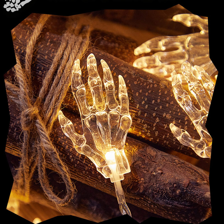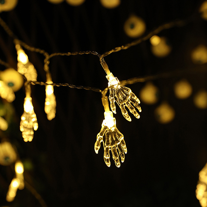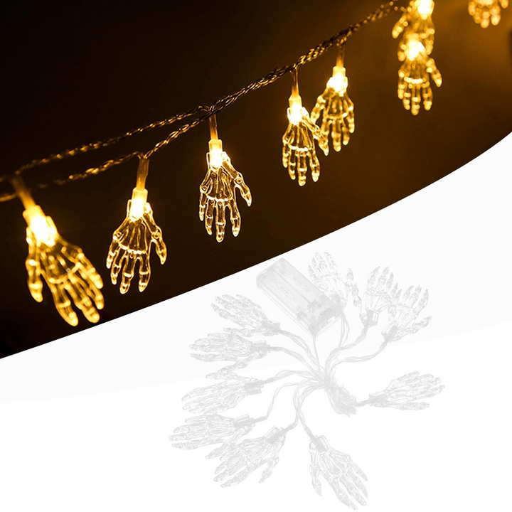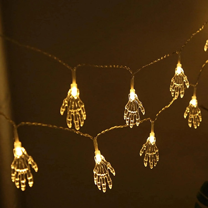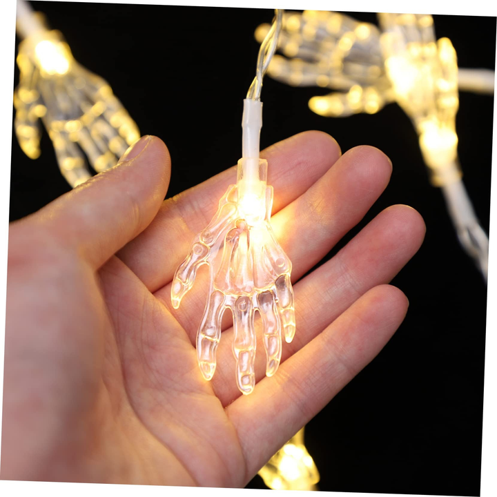 - عدد الأضواء: 10 أضواء LED دافئة بأشكال أيدي هيكل عظمي