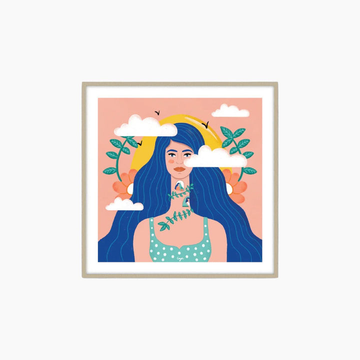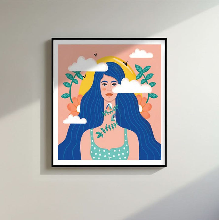 تُعد هذه الصورة الخيالية تكريمًا للإبداع والتأمل، فهي تصور امرأة محاطة بالطبيعة، وترمز إلى الهروب السلمي والإلهام.