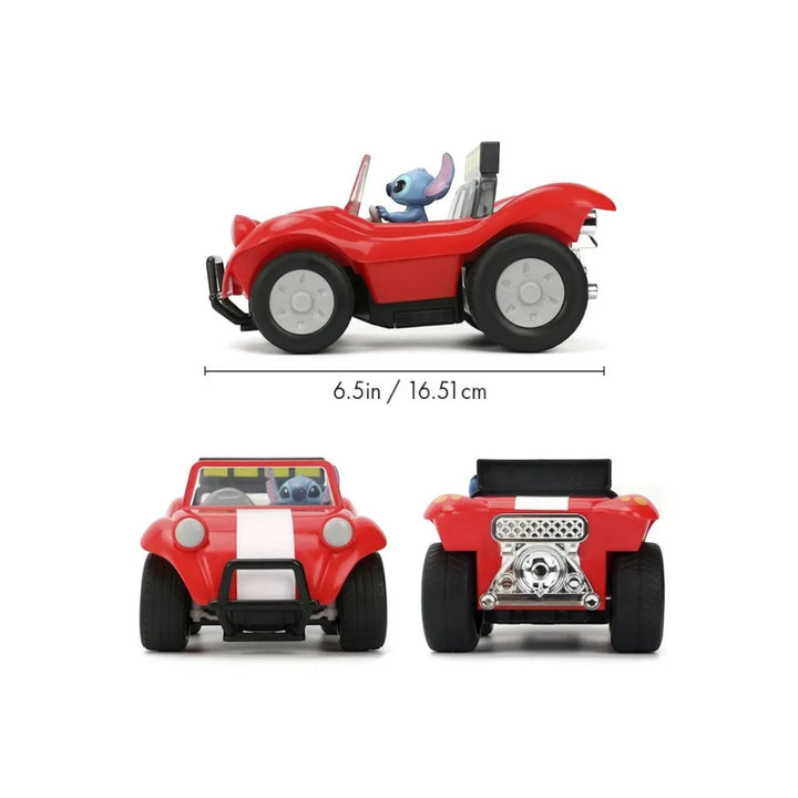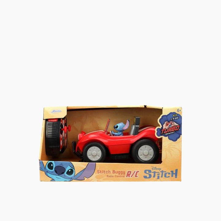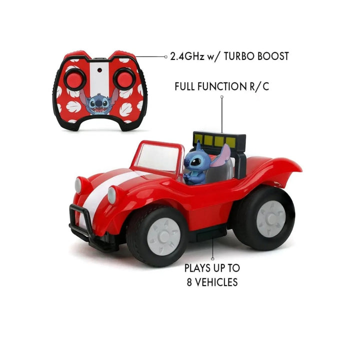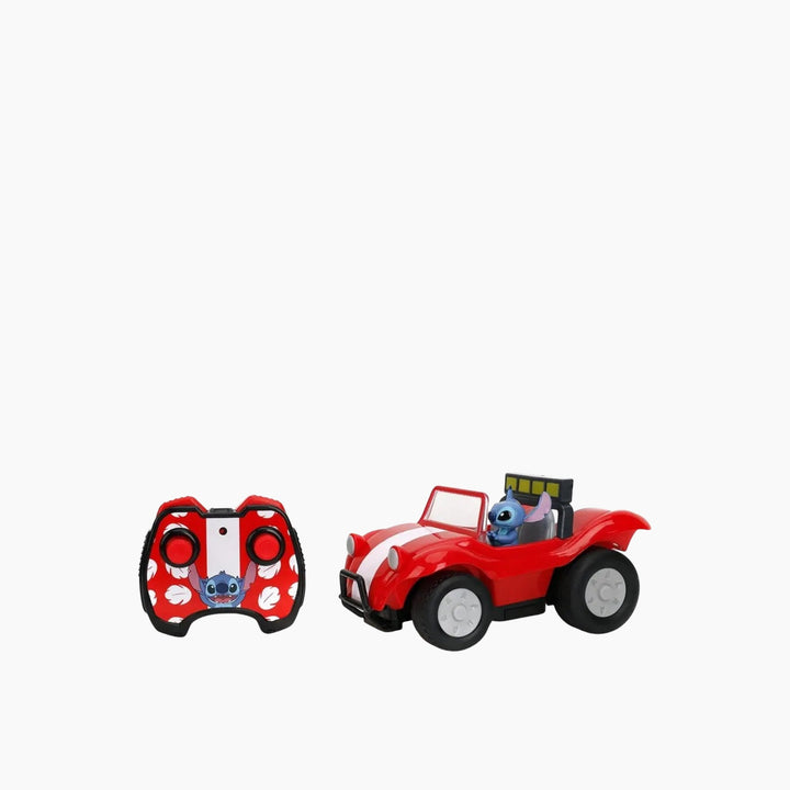 Prepare for extraterrestrial adventures with the Jada RC Stitch Buggy! This officially licensed Disney remote-controlled car brings the mischievous Stitch to life as he takes the driver's seat of a vibrant red buggy, ready to cause delightful mayhem. Perfect for fans of the beloved character and thrilling RC action, this buggy promises hours of entertainment.