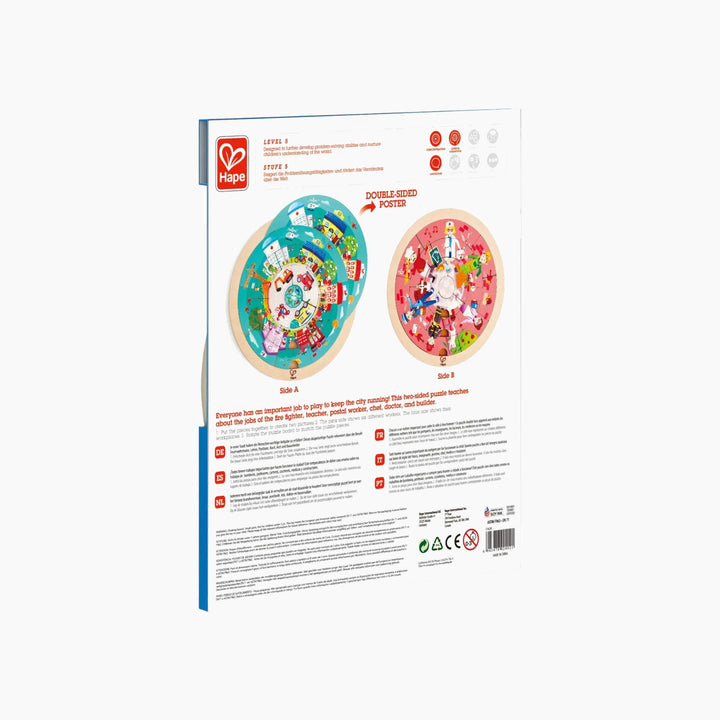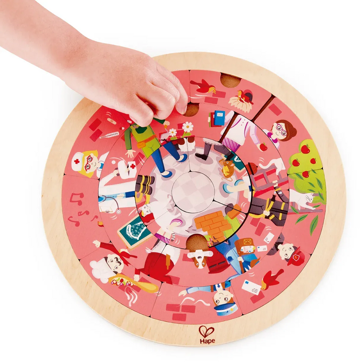 Introduce young minds to a world of professions with this engaging wooden puzzle. Designed for children aged 3 and up, this educational toy combines fun and learning by allowing kids to explore different careers through interactive play. The puzzle features a sturdy wooden base and three rotating discs, each with segments that kids can match to reveal four distinct professions. Crafted from natural wood and painted with non-toxic colors, it ensures safe play while enhancing visual recognition, logical thinking, and career awareness.