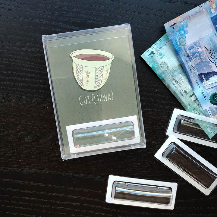 بطاقات نقدية بطابع أردنيّ (4 بطاقات مع علبة شفافة - ملصق لاصق)