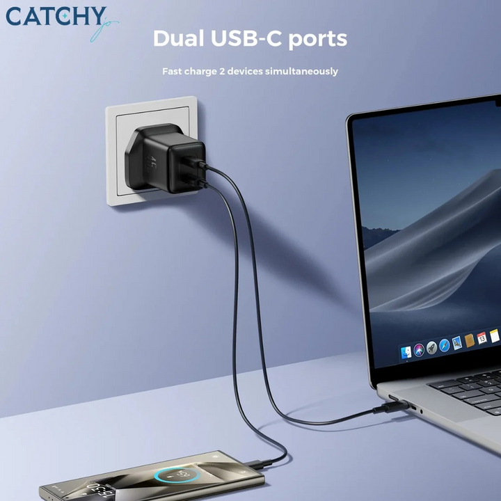 - Rapidly power up two devices simultaneously with its dual USB-C ports, each capable of delivering up to 45W.
