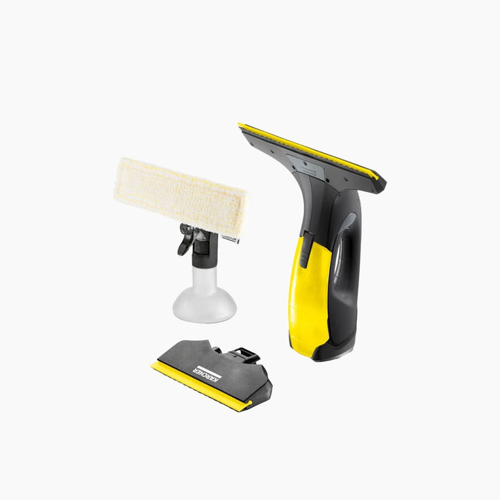 تنظيف النوافذ باستخدام فرشاة وشفرتين ممسحة